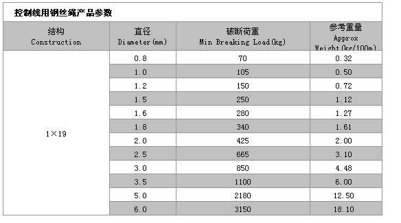 1*19鋼絲繩(控制線用)